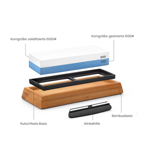 Für die ultimative Schärfe ist der 3000/8000-Kombinationsstein ideal. Das 3000er-Korn sorgt für einen feineren Schliff, während das 8000er-Korn die Klinge zu einer rasiermesserscharfen, professionellen Schneide poliert. Ein unverzichtbares Werkzeug für perfekte Ergebnisse.